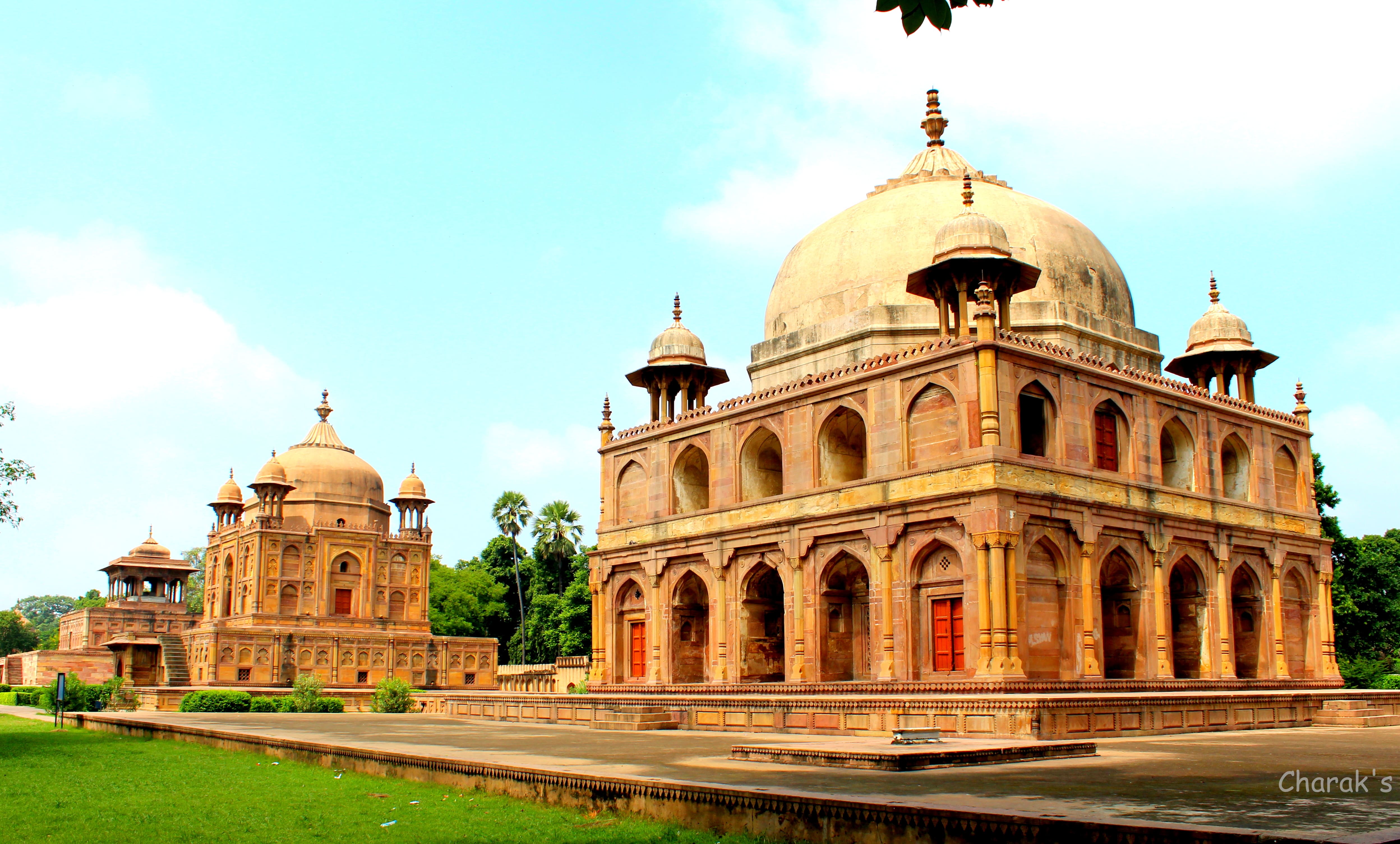 The garden holds three main sandstone mausoleums dedicated to Shah Begum, Prince Khusro Mirza and Princess Nithar Begum, each showcasing detailed Mughal carvings, arches and domes.