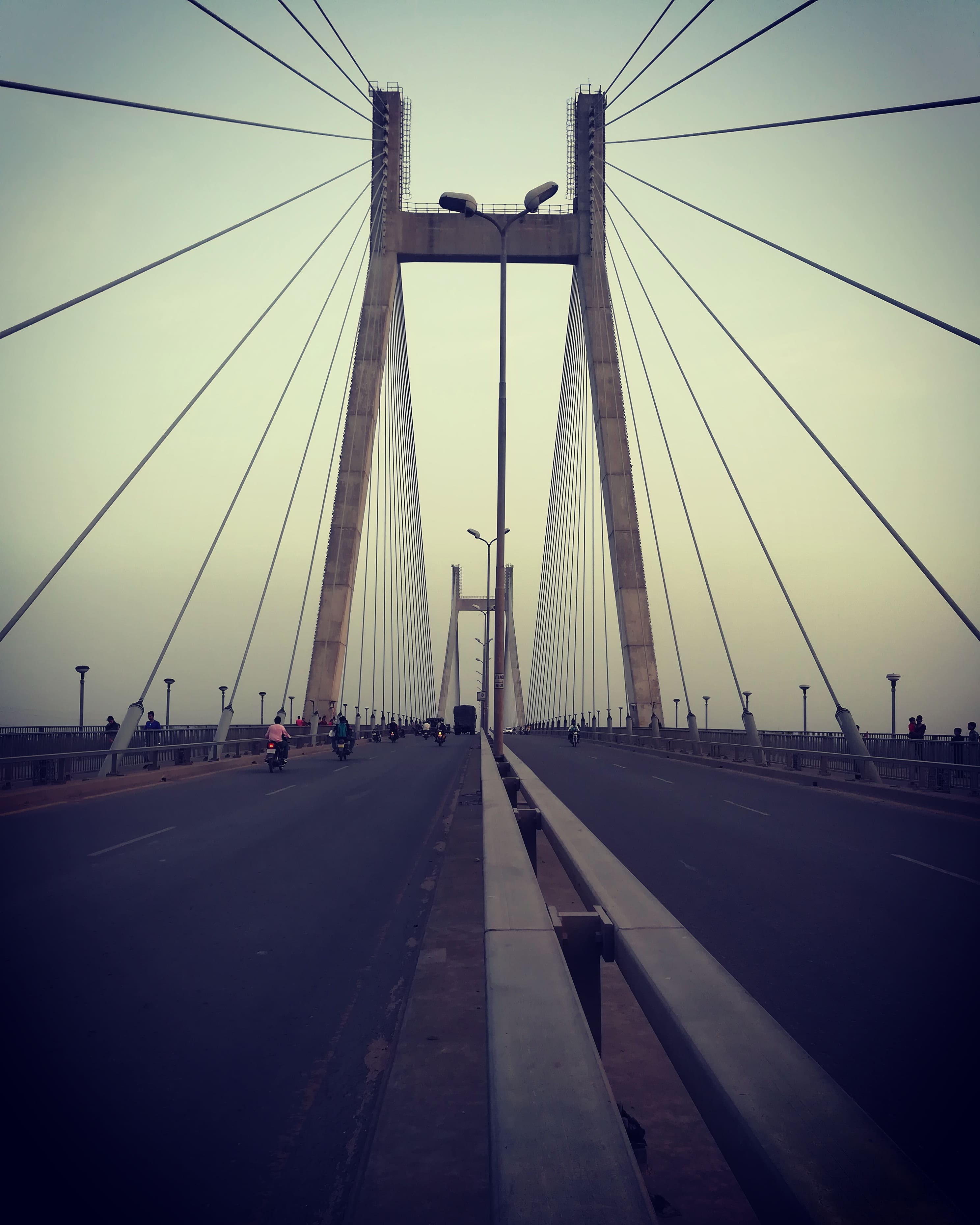 Concrete anchor spans at both ends and robust foundations within the riverbed give the bridge strength and stability against wind, traffic load and river flow.
